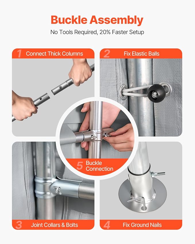 - Buckled Easy Assembly: This outdoor portable storage shelter can be quickly and easily assembled using buckle connectors with T-joints and cross joints, requiring no tools. With detailed assembly instructions, it ensures a fast and straightforward one-on-one connection.