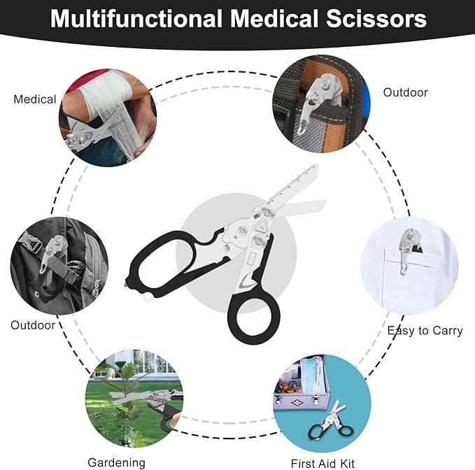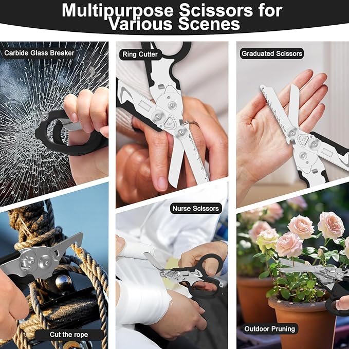 6-in-1 Trauma Clipper, Folding Emergency Clipper, Outdoor Camping Tool, Seat Belt Cutter, Oxygen Cylinder Wrench, Free Adjustable Wrench (Yellow Black Handle)