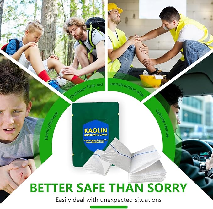 - ⚡️【INSTANT BLEED STOP】 - Stops severe, life-threatening bleeding in seconds! Our advanced hemostatic gauze uses [Mention Your Specific Technology, e.g., Kaolin Mineral to rapidly accelerate the body's natural clotting process, forming a strong clot FAST. Essential for traumatic wounds, arterial bleeds, and uncontrollable hemorrhage.