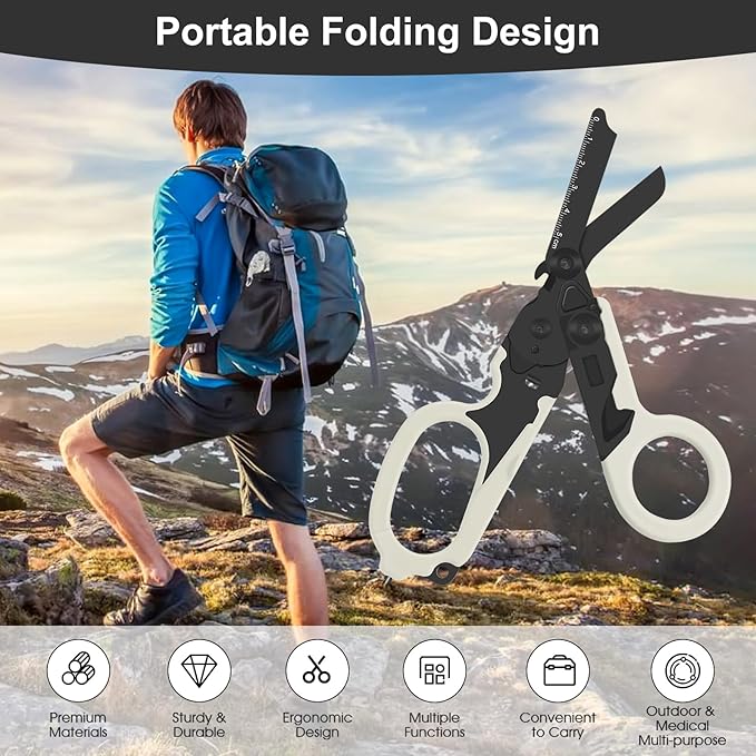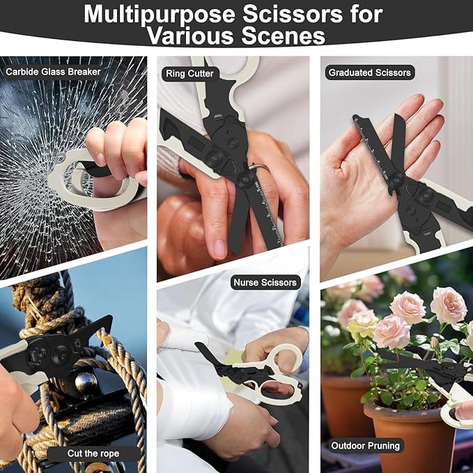 6in1 trauma shears - emergency responders, outdoor emergencies scissor, medical staff, and outdoor camping scissors, ttrauma scissors (Luminous Black)