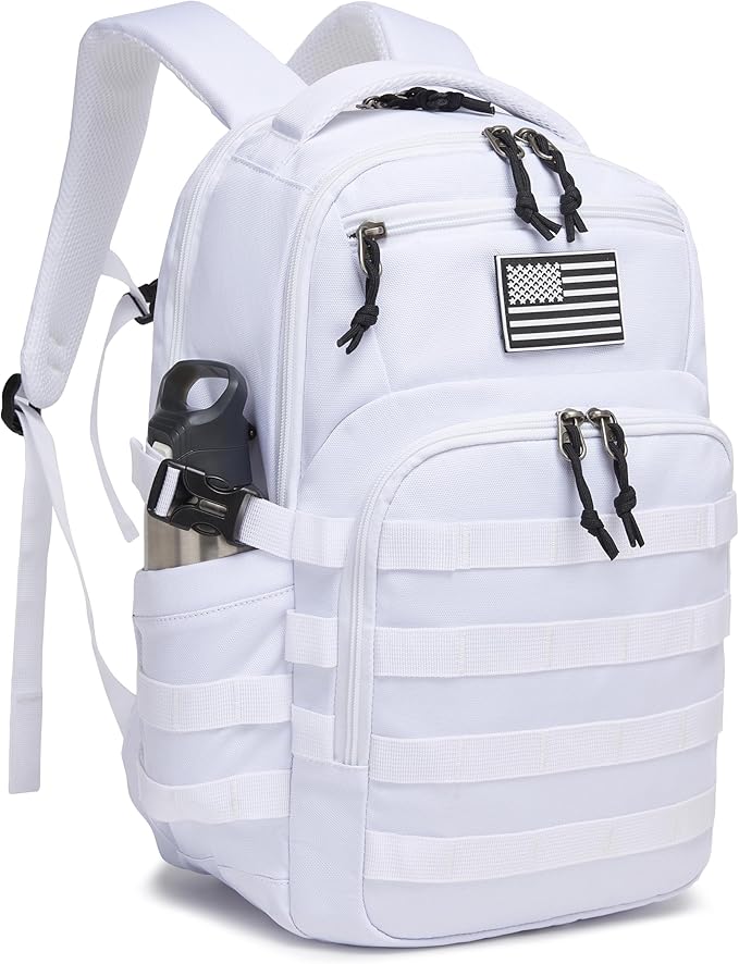 - Reliable and durable materials. Tactical Backpack Size 18.5 x 11.5 x 7.5 inches, capacity: 25L; military backpack made of 900D high-density fabric for durability.